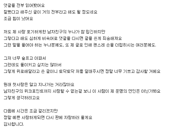 [결시친] 남자친구 누나 문제로 결국 헤어졌어요 (+후기 ) 네이트 판 레전드 썰